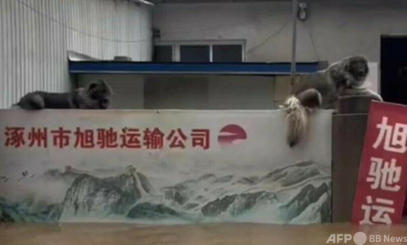 河北省涿州市(Zhouzhou)は最近、大雨による洪水に見舞われ、多くの家が浸水しました。水害に苦しむ住民を危険から救うため、救助隊が被災地に向かうことになりました。その移動中、浸水した家の塀の上で「家を守っている」2匹の犬を発見しました。救助隊は犬が家を堅守する様子に感動し、すぐに救助を決定しました。