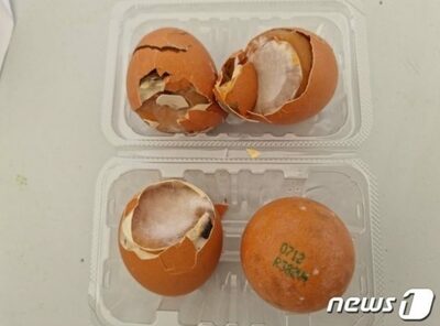 韓国のキャンプで配布の「ゆで卵」、殻をむいたら中に黒いモノが…