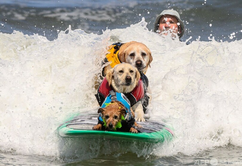 【8月6日 AFP】米カリフォルニア州パシフィカで5日、犬のサーフィン大会「ワールド・ドッグ・サーフィン・チャンピオンシップ(World Dog Surfing Championships)」が開催された。