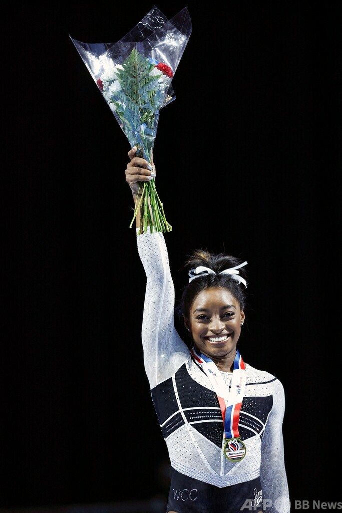 【8月6日 AFP】体操女子で4個の五輪金メダルを獲得している米国のシモーネ・バイルス(Simone Biles、26)が5日、2021年の東京五輪以来2年ぶりに競技会に出場し、優勝で復帰戦を飾った。