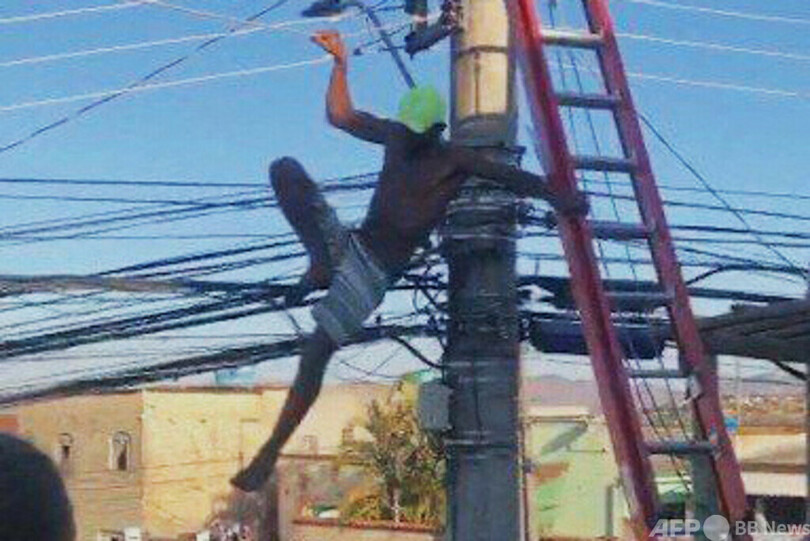 電柱に「籠城」した男、24時間後に投降 ブラジル