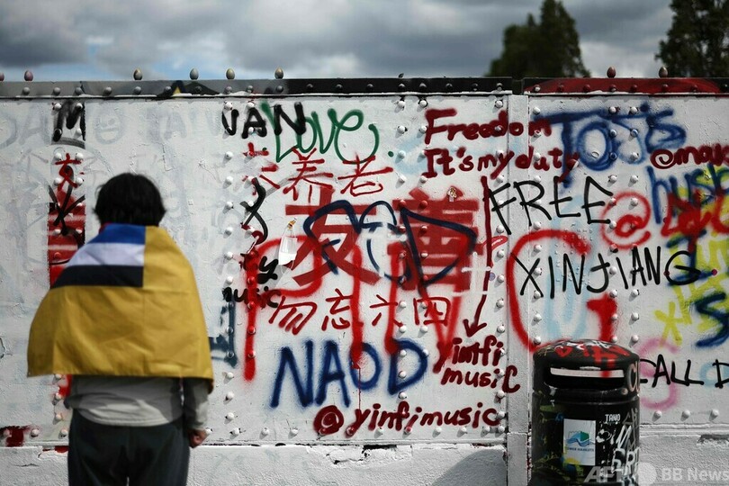 親中派、反中派が落書き合戦 英ロンドン