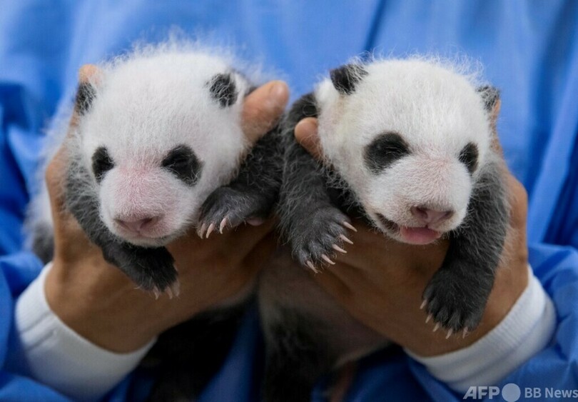 韓国で生まれた双子パンダが生後1カ月に