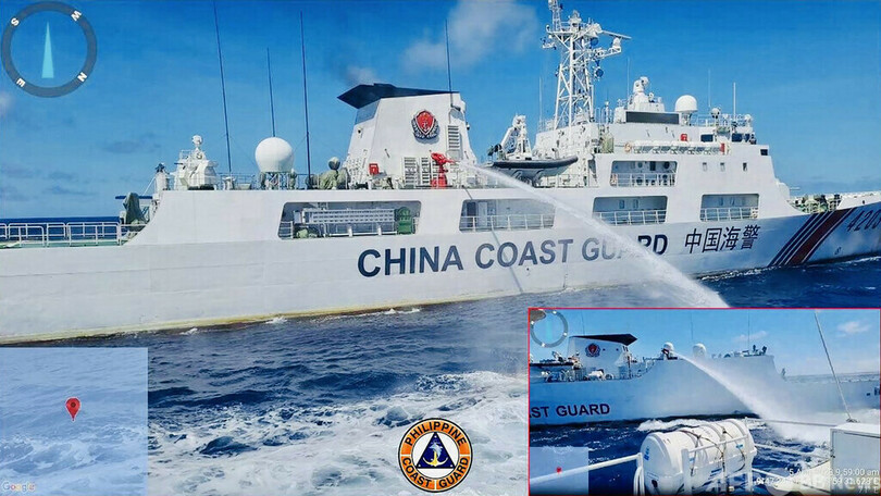 フィリピン政府は5日、沿岸警備隊の巡視船とチャーター船2隻で拠点に食料、水、燃料を補給しようとしたが、中国海警局の船舶が放水銃を使用するなどして妨害。チャーター船1隻は荷揚げに成功したが、もう1隻は拠点に到達できなかった。