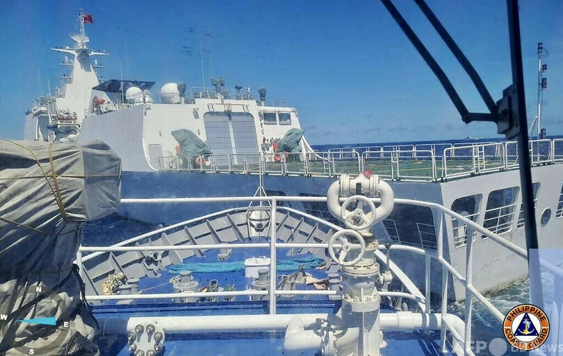 フィリピン政府は5日、沿岸警備隊の巡視船とチャーター船2隻で拠点に食料、水、燃料を補給しようとしたが、中国海警局の船舶が放水銃を使用するなどして妨害。チャーター船1隻は荷揚げに成功したが、もう1隻は拠点に到達できなかった。
