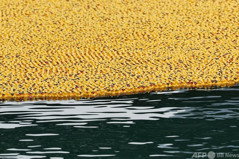 【8月11日 AFP】米イリノイ州シカゴで10日、毎年恒例の慈善イベント「シカゴ・ダック・ダービー(Chicago Duck Derby)」が開催され、7万5000個のゴム製のアヒルがシカゴ川でゴールを目指して競った。