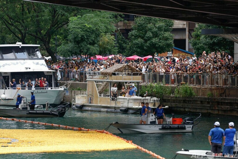 【8月11日 AFP】米イリノイ州シカゴで10日、毎年恒例の慈善イベント「シカゴ・ダック・ダービー(Chicago Duck Derby)」が開催され、7万5000個のゴム製のアヒルがシカゴ川でゴールを目指して競った。