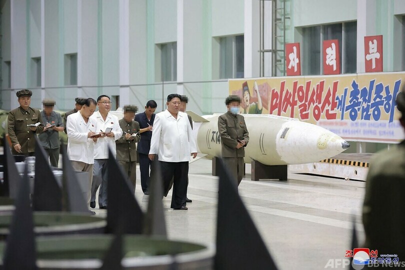 【8月14日 AFP】北朝鮮の朝鮮中央通信(KCNA)は14日、金正恩(キム・ジョンウン、Kim Jong Un)朝鮮労働党総書記が、11~12日に重要軍需工場を視察し、ミサイル生産の「増強」を指示したと伝えた。戦術ミサイルや多連装ロケット砲の砲弾、装甲戦闘車などの生産工場を視察した。