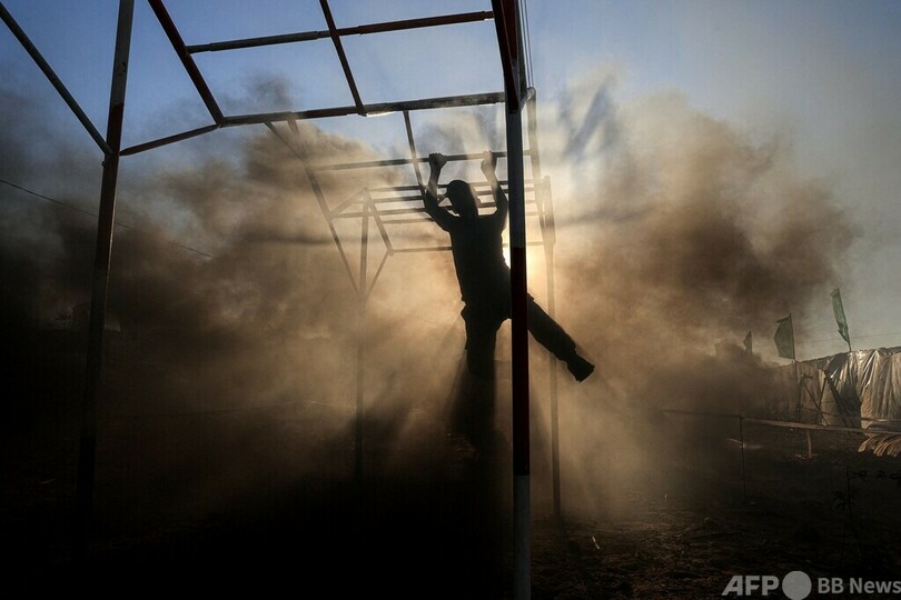 【今日の1枚】灼熱の訓練、火の輪をくぐる パレスチナ自治区