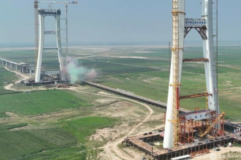 今後の作業は主桁と斜張ケーブルの建設段階に移ります。開通は2025年の予定です。(c)CGTN Japanese/AFPBB News