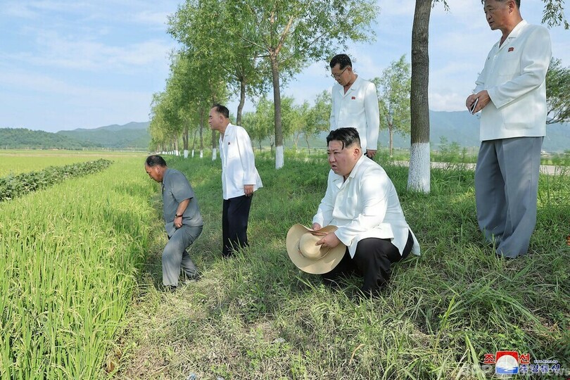 KCNAによると、金氏は台風6号による洪水被害を受けた江原道(Kangwon Province)の水田を訪問。作物を守ろうと協力した兵士らの愛国心により「被害は完全に回復する」と述べた。