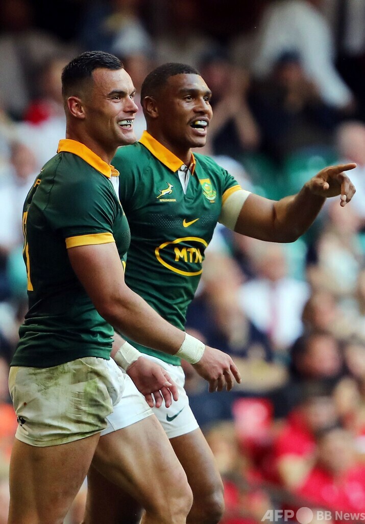 ペナルティートライ1本を含め、8トライを決めた南アフリカは、敵地でのウェールズ戦では過去最大の大勝を収めた。チームはこの後もW杯フランス大会へ向けた準備の試合が続き、25日に英ロンドンでライバルのニュージーランドと対戦する。