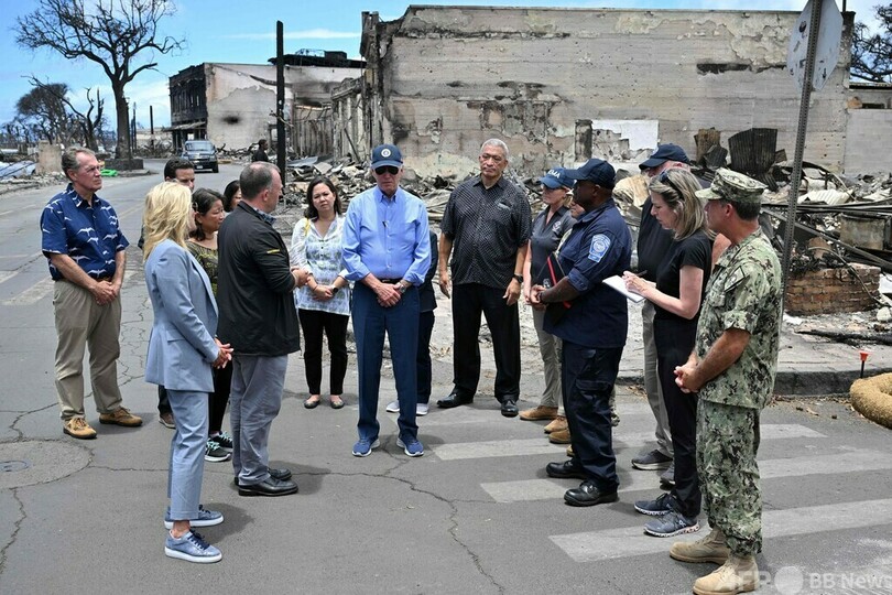 【8月22日 AFP】ジョー・バイデン(Joe Biden)米大統領は21日、妻のジル(Jill Biden)氏と共にハワイ・マウイ(Maui)島入りし、少なくとも114人の犠牲者を出した山火事の被災地を視察した。