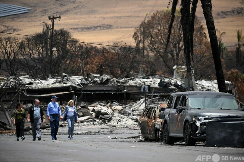【8月22日 AFP】ジョー・バイデン(Joe Biden)米大統領は21日、妻のジル(Jill Biden)氏と共にハワイ・マウイ(Maui)島入りし、少なくとも114人の犠牲者を出した山火事の被災地を視察した。