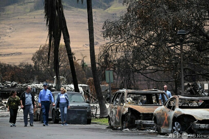 【8月22日 AFP】ジョー・バイデン(Joe Biden)米大統領は21日、妻のジル(Jill Biden)氏と共にハワイ・マウイ(Maui)島入りし、少なくとも114人の犠牲者を出した山火事の被災地を視察した。