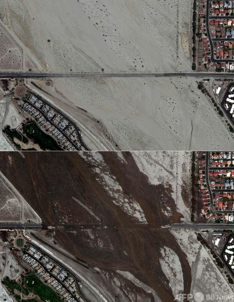 【8月22日 AFP】熱帯低気圧「ヒラリー(Hilary)」が20日、米カリフォルニア州南部に上陸し、激しい雨と風をもたらした。上陸前の15日の州内各地の様子と、ヒラリーにより被害を受けた後の21日の様子を捉えた衛星画像を、宇宙技術会社マクサー・テクノロジーズ(Maxar Technologies)が公開した。