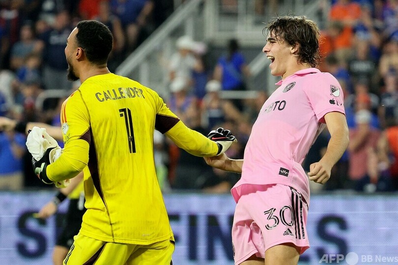 【8月24日 AFP】サッカーUSオープンカップ(2023 Lamar Hunt U.S. Open Cup)は23日、準決勝が行われ、インテル・マイアミ(Inter Miami)は3‐3で迎えたPK戦の末に5‐4でFCシンシナティ(FC Cincinnati)を下し、リオネル・メッシ(Lionel Messi)加入後2度目のカップ戦決勝進出を決めた。