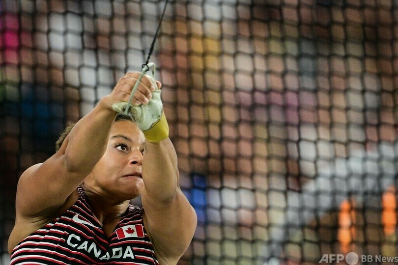 女子ハンマー投げでは、カムリン・ロジャーズ(Camryn Rogers)が77メートル22の投てきで優勝を飾り、男子のこの種目を制したイーサン・カツバーグ(Ethan Katzberg)に続いてカナダ勢が2冠を達成した。(c)AFP/Luke PHILLIPS