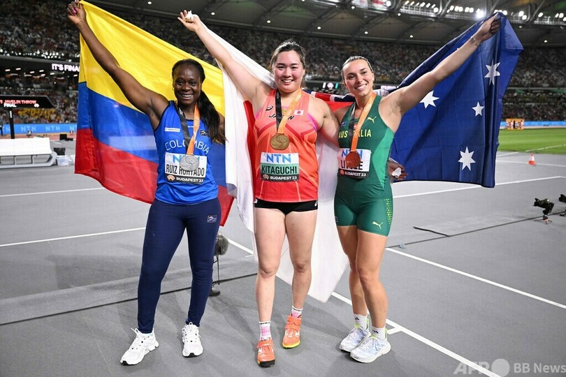 【8月26日 AFP】第19回世界陸上ブダペスト大会(World Athletics Championships Budapest 2023)は25日、女子やり投げ決勝が行われ、北口榛花(Haruka Kitaguchi)が最終投てきで66メートル73を記録して劇的な逆転を果たし、金メダルを獲得した。