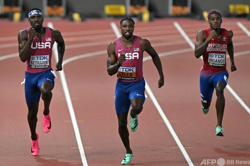 【8月26日 AFP】第19回世界陸上ブダペスト大会(World Athletics Championships Budapest 2023)は25日、男子200メートル決勝が行われ、ノア・ライルズ(Noah Lyles、米国)が19秒52で3連覇を飾るとともに、2015年大会のウサイン・ボルト(Usain Bolt、ジャマイカ)以来となる100メートルとの短距離2冠を達成した。
