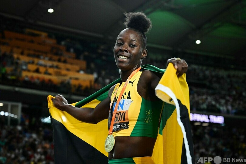 【8月26日 AFP】第19回世界陸上ブダペスト大会(World Athletics Championships Budapest 2023)は25日、各種目決勝が行われ、女子200メートルではジャマイカのシェリカ・ジャクソン(Shericka Jackson)が世界歴代2位となる21秒41の大会新記録を樹立し、金メダルを獲得した。