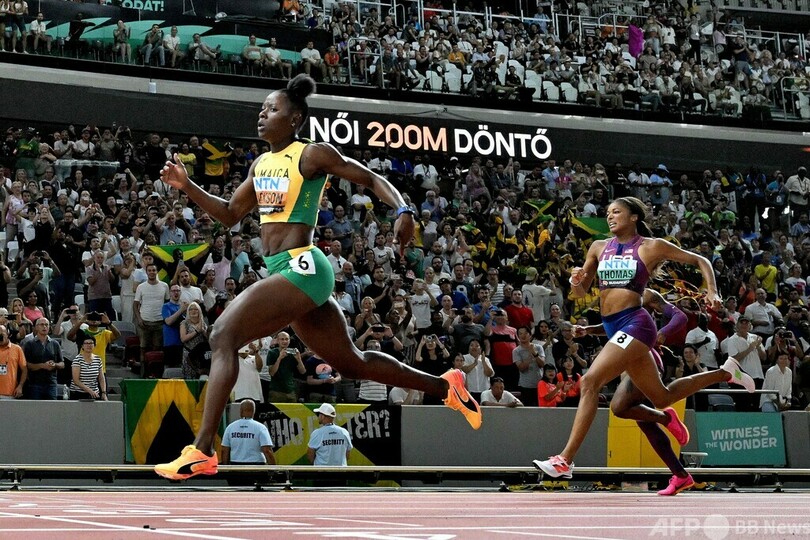 【8月26日 AFP】第19回世界陸上ブダペスト大会(World Athletics Championships Budapest 2023)は25日、各種目決勝が行われ、女子200メートルではジャマイカのシェリカ・ジャクソン(Shericka Jackson)が世界歴代2位となる21秒41の大会新記録を樹立し、金メダルを獲得した。
