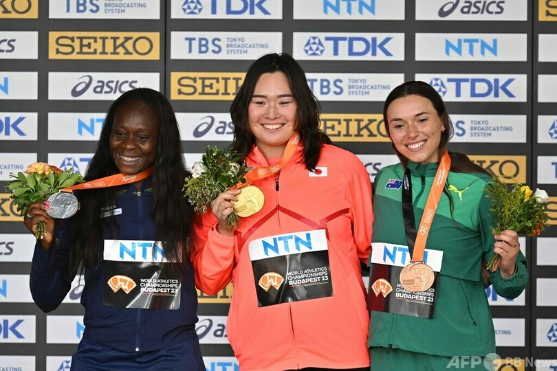 【8月27日 AFP】第19回世界陸上ブダペスト大会(World Athletics Championships Budapest 2023)は26日、女子やり投げの表彰式が行われ、北口榛花(Haruka Kitaguchi)に金メダルが授与された。