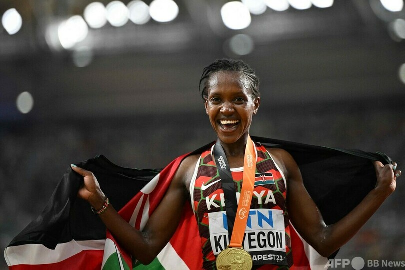 【8月27日 AFP】第19回世界陸上ブダペスト大会(World Athletics Championships Budapest 2023)は26日、各種目決勝が行われ、女子5000メートルではケニアのフェイス・キピエゴン(Faith Kipyegon)が1500メートルに続く金メダルを獲得し、中長距離の史上最強ランナーの1人としての地位を強調した。
