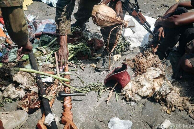 軍は刃が付いた多数の武器も押収。キリスト教と精霊信仰を融合させた宗教団体の指導者ら168人を拘束した。
