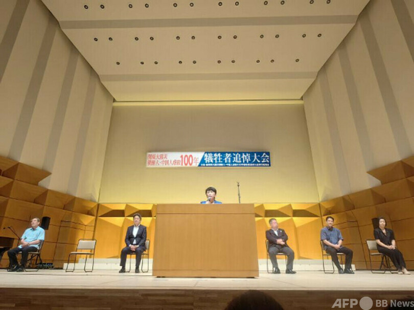 100年前に起きた同事件では、約800人の在日中国人と6000人余りの在日朝鮮人が日本の自警団と軍国主義暴徒による虐殺で死亡しました。事件の直接の起因は一部の人が意図的にデマをばらまき、世間の不安と恐怖心を煽ったことにありますが、その根本には、当時の日本が軍国主義の道を歩み、国内に極端な民族主義と排外主義、外国への差別的、敵対的な風潮がまん延していることにあります。この事件はその後、中国およびアジアの国々に深刻な災難をもたらした日本による侵略戦争への伏線となりました。(c)CGTN Japanese/AFPBB News
