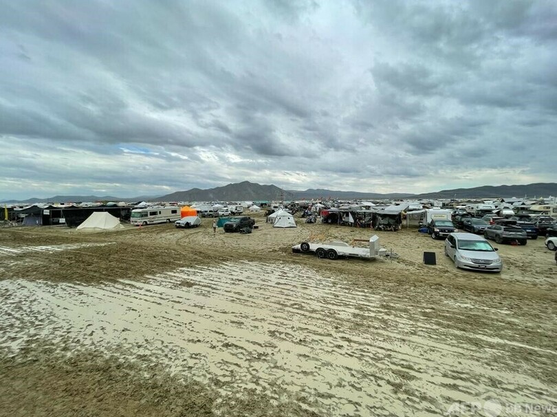 砂漠の祭典「バーニングマン」、豪雨で立ち往生 米ネバダ州