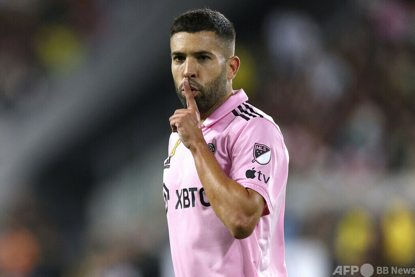 するとマイアミは51分、スペイン1部リーグのFCバルセロナ(FC Barcelona)でプレーしていたトリオが見事なコンビネーションを披露。セルヒオ・ブスケッツ(Sergio Busquets)のパスを受けたメッシのスルーパスからオーバーラップしたジョルディ・アルバ(Jordi Alba)がペナルティーエリア内に入り込み、左足の冷静なシュートで追加点を挙げた。