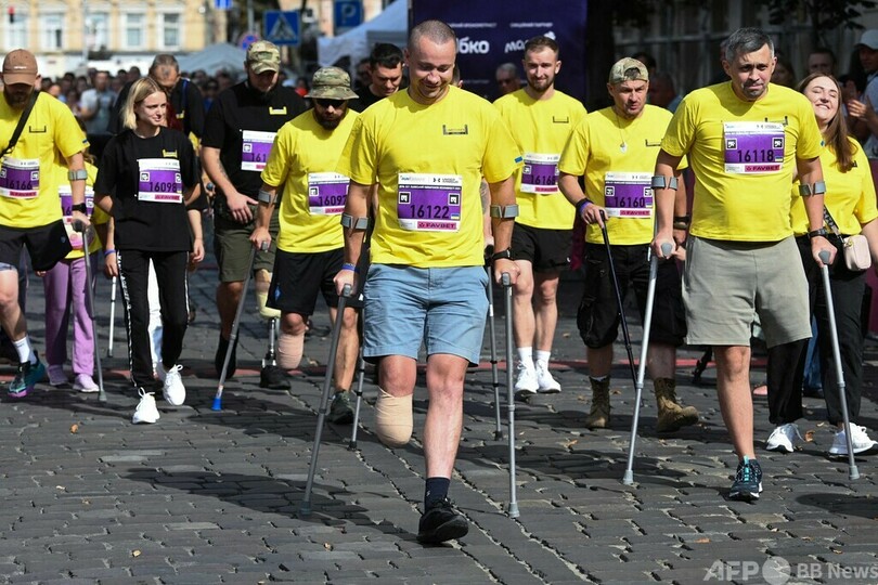【9月4日 AFP】ウクライナ西部リビウ(Lviv)州の州都リビウで3日、ランニング大会が催され、昨年2月に始まったロシアによるウクライナ侵攻で負傷し、足を失った人々も出場した。