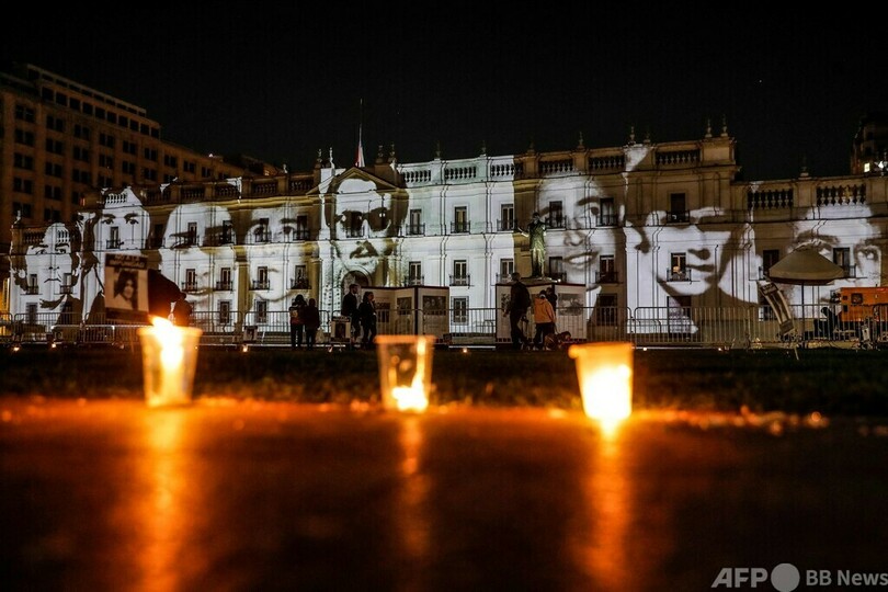 【今日の1枚】宮殿に映し出された顔写真、行方不明者の情報求め チリ