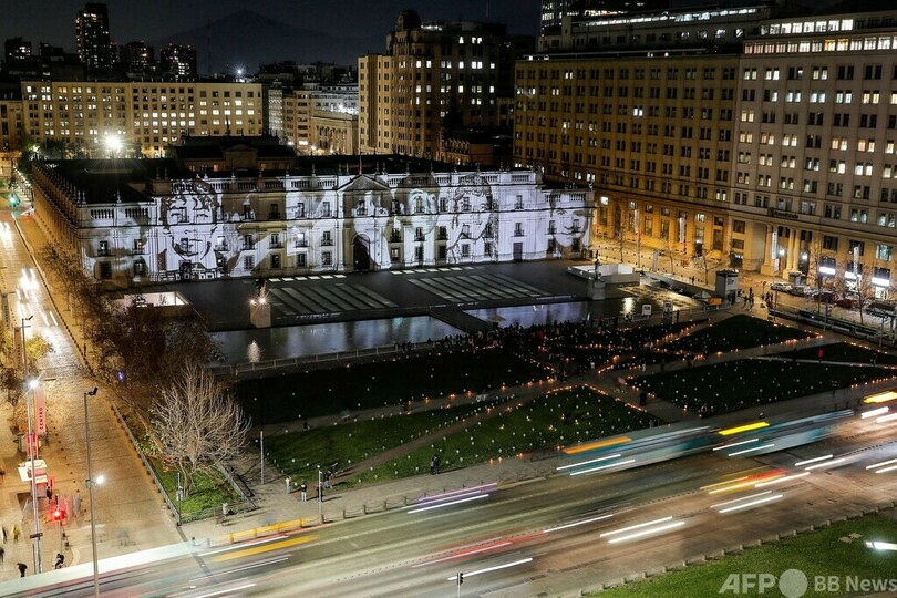 【今日の1枚】宮殿に映し出された顔写真、行方不明者の情報求め チリ