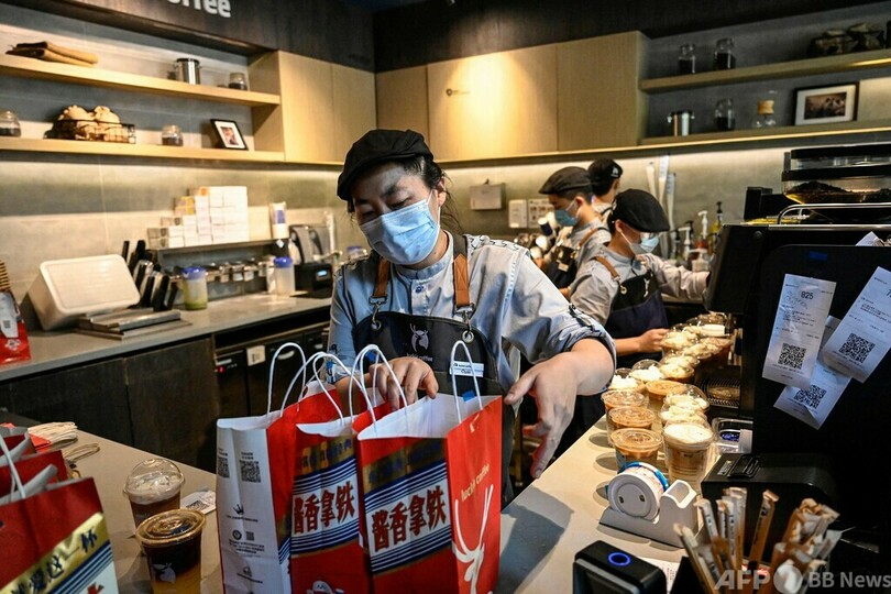 瑞幸珈琲の従業員はAFPに対し、当日のオーダーの「約8割」が新製品に集中していると話した。同日午後には、注文が集中しすぎたため、新規の注文受け付けが打ち切られた。(c)AFP