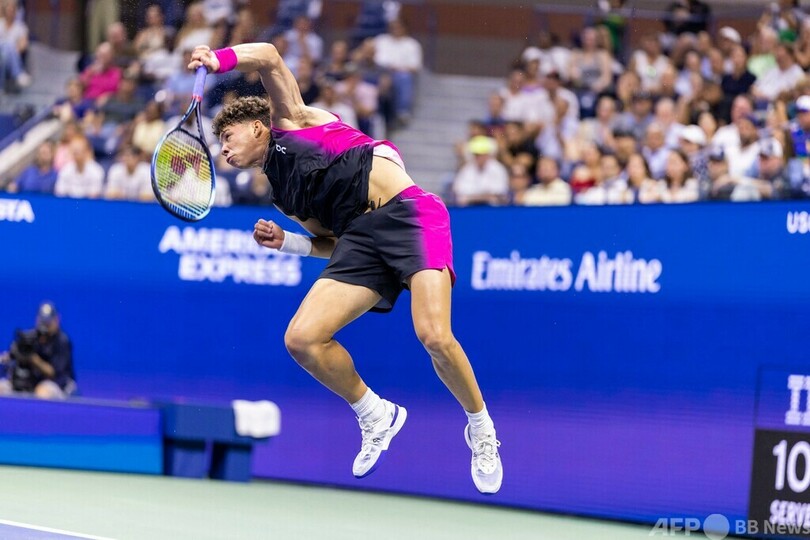 【9月6日 AFP】全米オープンテニス(US Open Tennis Championships 2023)は5日、男子シングルス準々決勝が行われ、ノーシードのベン・シェルトン(Ben Shelton)が6-2、3-6、7-6(9-7)、6-2で大会第10シードのフランシス・ティアフォー(Frances Tiafoe)との米国勢対決を制し、ノバク・ジョコビッチ(Novak Djokovic、セルビア)が待つ準決勝へ駒を進めた。