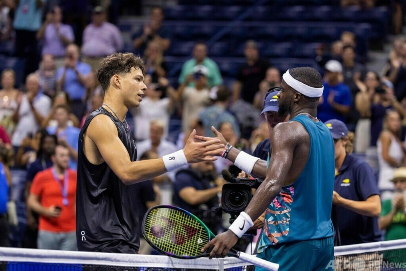 【9月6日 AFP】全米オープンテニス(US Open Tennis Championships 2023)は5日、男子シングルス準々決勝が行われ、ノーシードのベン・シェルトン(Ben Shelton)が6-2、3-6、7-6(9-7)、6-2で大会第10シードのフランシス・ティアフォー(Frances Tiafoe)との米国勢対決を制し、ノバク・ジョコビッチ(Novak Djokovic、セルビア)が待つ準決勝へ駒を進めた。