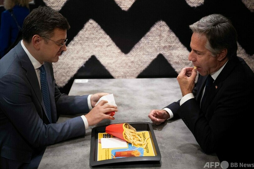 ブリンケン氏は同席したウクライナのドミトロ・クレバ(Dmytro Kuleba)外相に「フライドポテトを食べたい気分だ」と話し掛けた。