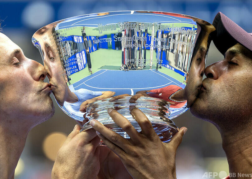 全米男子ダブルスでの3連覇達成は、100年以上前の1912~14年大会でのトム・バンディ(Tom Bundy)/モーリス・マクローリン(Maurice McLoughlin)の米国ペア以来となった。(c)AFP