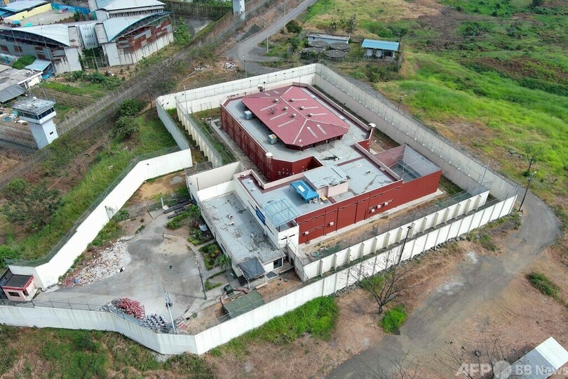 ラロカ刑務所には、大統領選の有力候補フェルナンド・ビジャビセンシオ(Fernando Villavicencio)氏を先月殺害した容疑で拘束されたコロンビア人6人も収監されている。(c)AFP