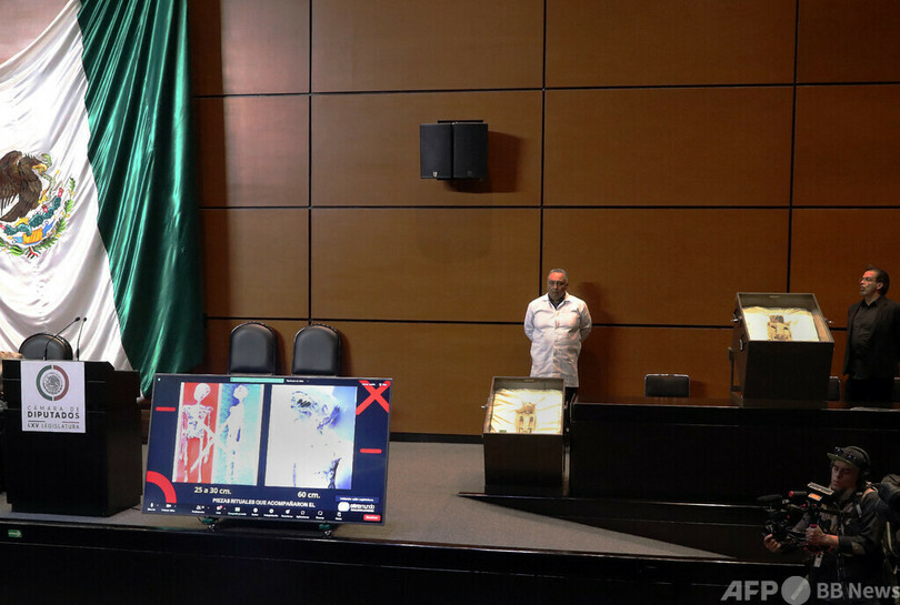 【9月14日 AFP】メキシコ議会の12日の公聴会で、「人類ではない」生物の遺体とされるもの2体が公開された。同議会が地球外生命の可能性について公式に取り上げたのは今回が初めて。