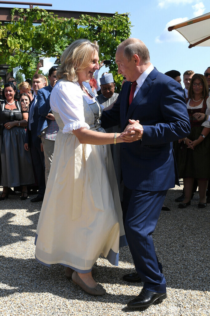 クナイスル氏は2018年、中立政策を取るオーストリアの外相在任時に、同国南東部ガムリッツ(Gamlitz)で行った自らの結婚式にプーチン氏を招待。一緒にワルツを踊ったことで話題になった。