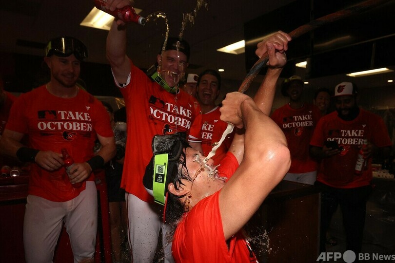 オリオールズのPO進出決定 藤浪もシャンパンファイトで歓喜