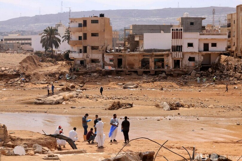 【9月18日 AFP】リビアが暴風雨「ダニエル」の直撃を受け、東部デルナ(Derna)で津波のような洪水が発生して1週間となる17日、各国から到着した救助隊は活動ペースを徐々に速めて捜索を行った。