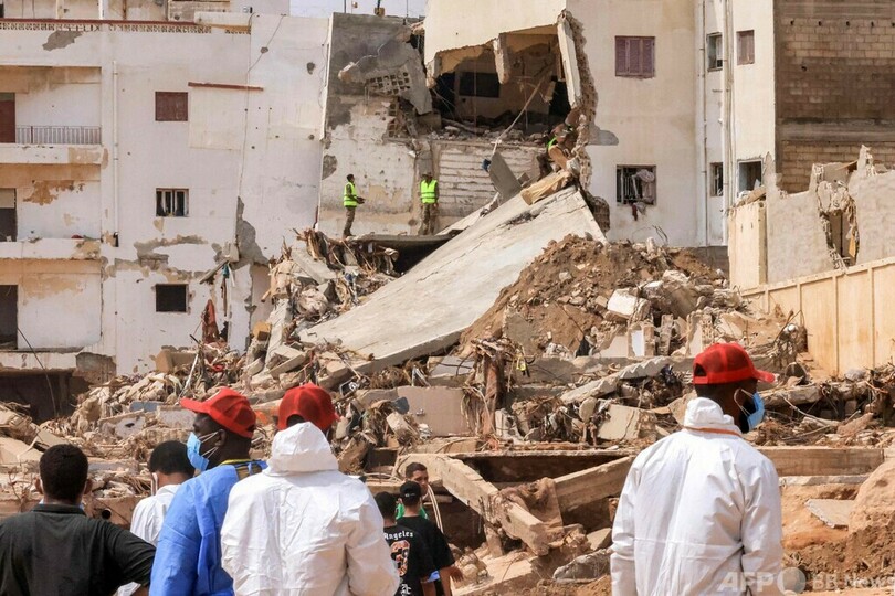 【9月18日 AFP】リビアが暴風雨「ダニエル」の直撃を受け、東部デルナ(Derna)で津波のような洪水が発生して1週間となる17日、各国から到着した救助隊は活動ペースを徐々に速めて捜索を行った。