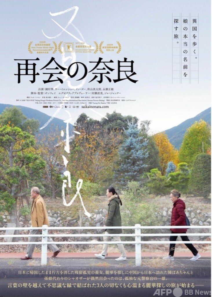 「再会の奈良」は、中国東北の80歳近くの善良な陳(Chen)ばあさんが、何年も連絡が途絶えてしまった中国残留孤児の養女を探すために、一人で奈良県にやって来て、現地の「中国残留孤児」の小沢と引退警察官の吉沢一雄と共に、養女探しの旅を始めるという「中国残留孤児」にスポットを当てた物語だ。