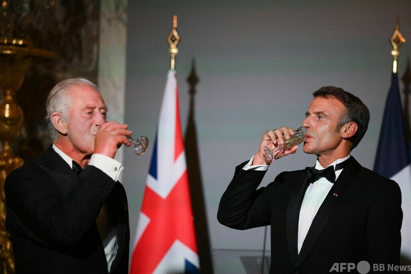 【9月21日 AFP】フランスを訪問中の英国のチャールズ国王(King Charles III)は20日、エマニュエル・マクロン(Emmanuel Macron)大統領が主催するベルサイユ宮殿(Chateau de Versailles)での晩さん会に出席した。