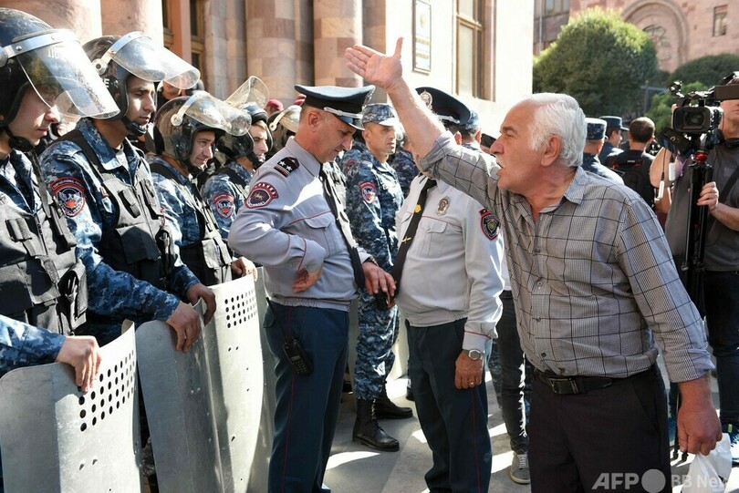 首都エレバンでは数千人が抗議活動を行った。デモ隊らは、政府の対応を非難。警察官に瓶や石を投げつけた。警察官らは、これに対し、閃光(せんこう)弾を使用し、参加者らを拘束した。