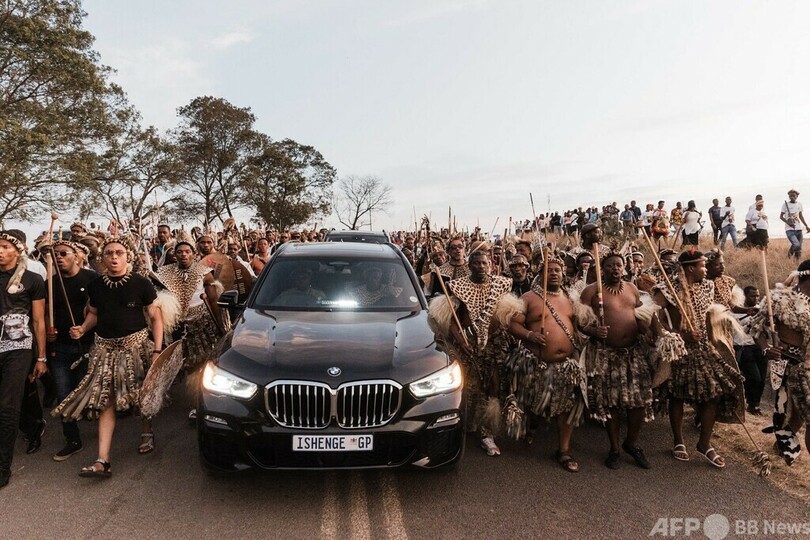 【今日の1枚】盛大な見送り、霊きゅう車を囲むズールーの戦士 南ア
